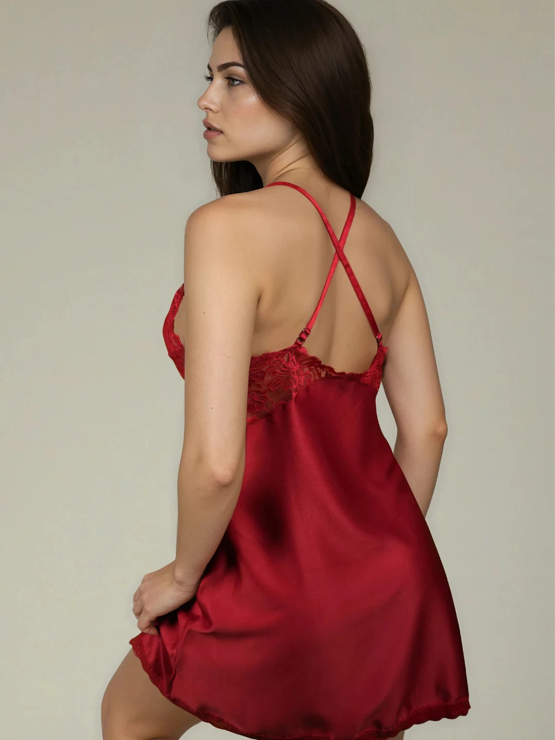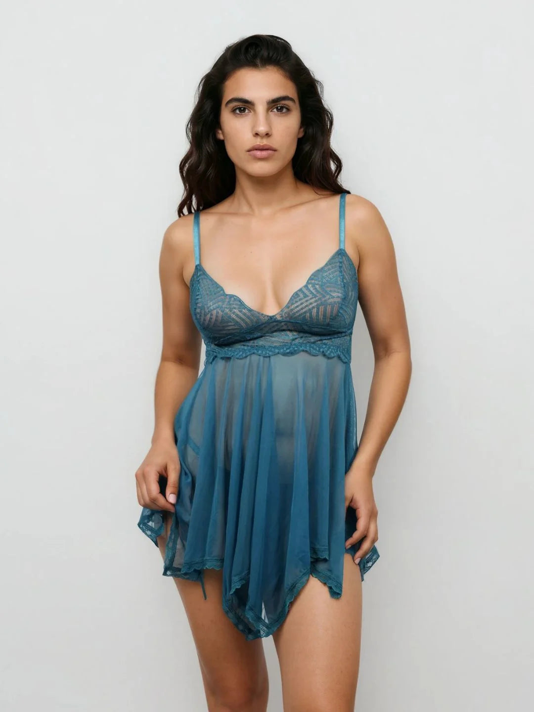 La Femme Blue Lace Babydoll Slip Dress With Panty