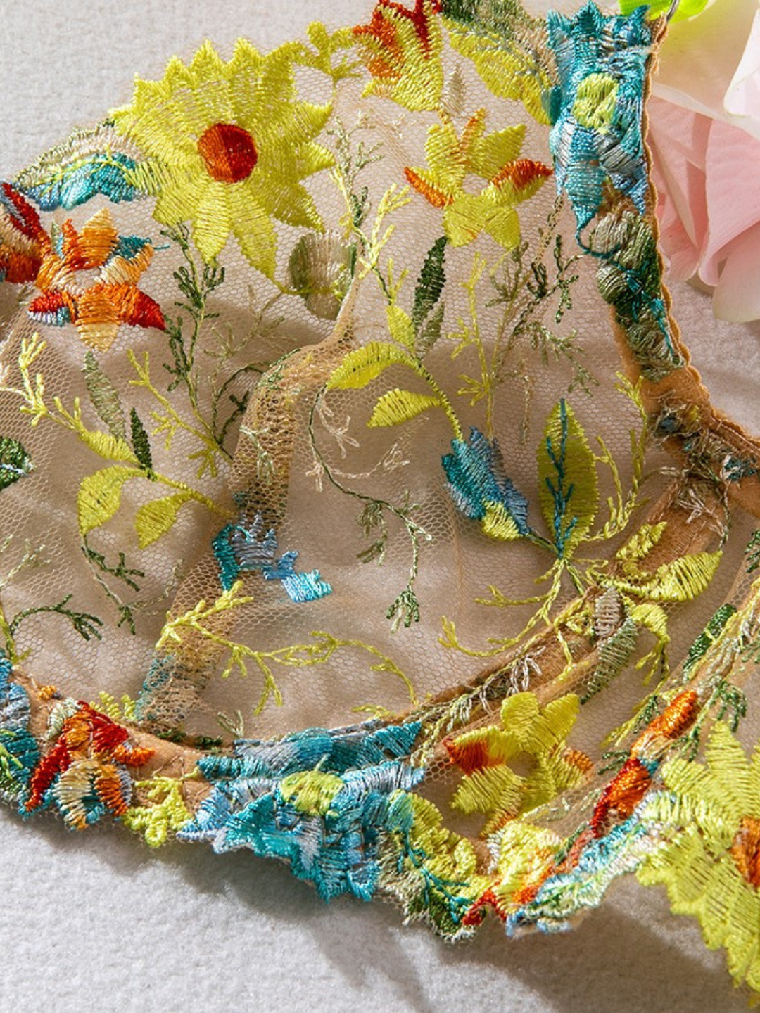 The underwired, non-padded cups offer natural lift with a barely-there feel, while adjustable straps and back hook-and-eye closures promise a flawless fit every time. Finished with intricate floral embellishment, it’s not just lingerie - it’s wearable art.