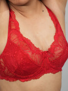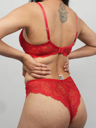 - Bold red lace with power mesh creates a striking, feminine, and elegant lingerie look.