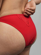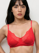 - Vibrant red lace with power mesh creates a bold, sensual, and feminine lingerie look.