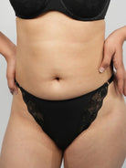 - Luxurious black lace with power mesh offers a refined and feminine look.