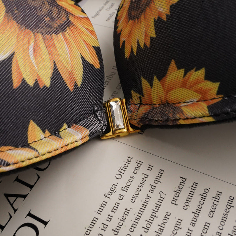 Step into sunshine, no matter the season, with the Sunny Side Daily Bra & Panty Set. A playful blend of charm and confidence, this set features delicate yellow floral accents against a bold black backdrop, creating the perfect harmony of softness and strength. Crafted from silky, stretchable fabric, it offers a sculpting yet breathable fit, designed for all-day ease with an irresistible touch of flirtation.